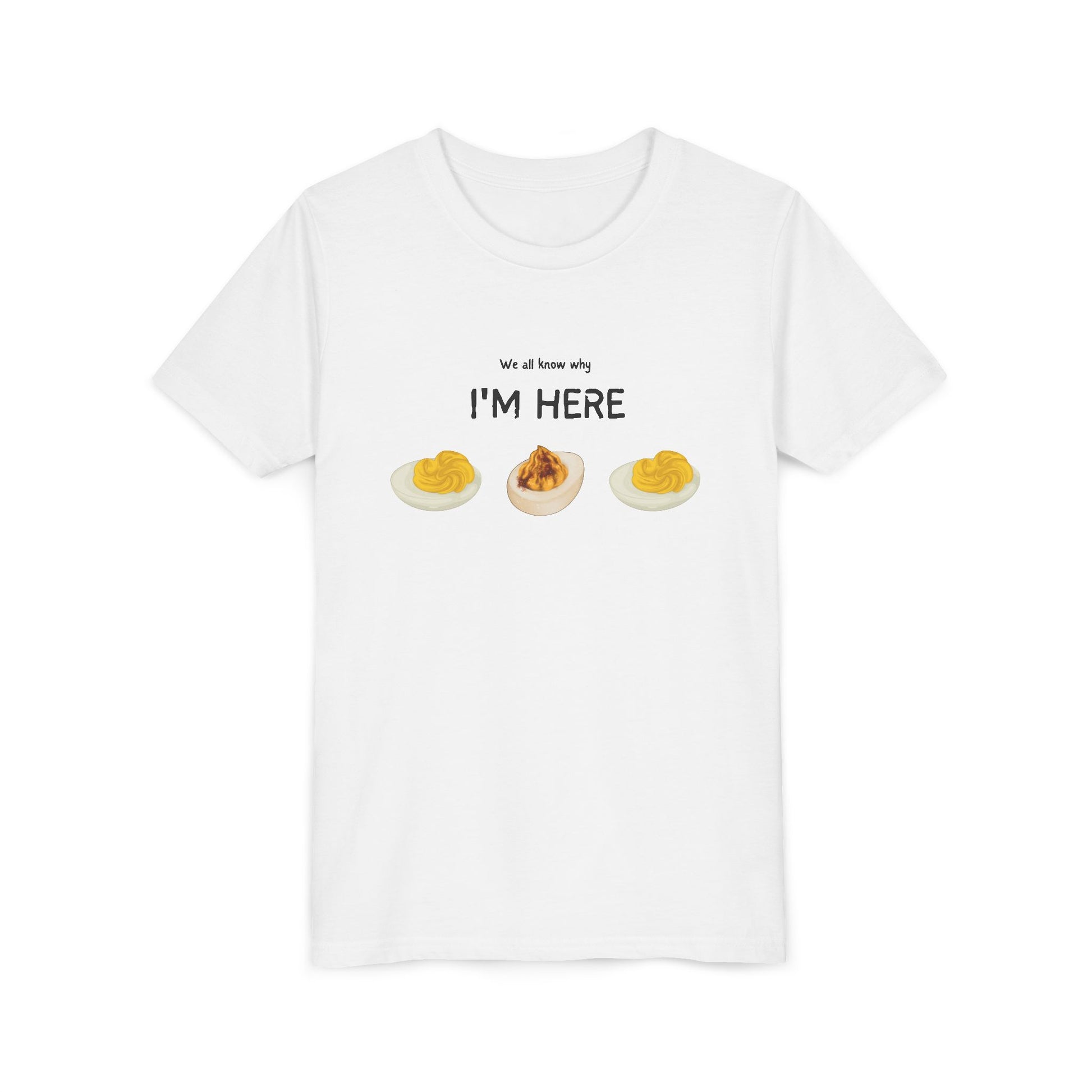 Deviled Egg Humor Youth T-Shirt Funny Food Pun Kids Tee, Cute Graphic Shirt for Boys & Girls, Punny Egg Lover Gift, Funny Kids T-Shirt